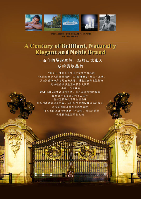 YOUR-LIFE不仅是英国国宝级产品,也已成为欧洲及美加澳纽等国名人雅士在肌肤清洁、保养及SPA的第一选择, YOUR-LIFE 旗下的个人保养用品只提供给全世界最顶级的五星级饭店及邮轮的客户使用。不过从这现在开始,您不必走出国门,就可让您在温暖的家中享有皇家般的尊贵SPA与肌肤细致保养!